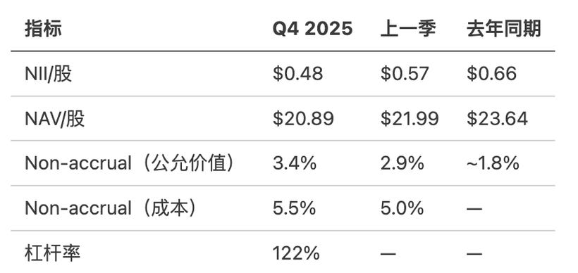 在华尔街,管理层哪怕借钱发股息,也要死死维持住“一切正常”的幻觉,因为买这类股票的投资者只看重收租。只有当底层坏账(Non-accrual)的窟窿大到彻底捂不住时,他们才会迫不得已举起白旗。降幅31%的潜台词就是:完全维持不下去了。